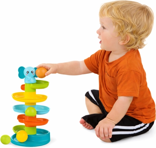 Questa torre didattica divertente è progettata per le manine dei più piccoli. I pezzi hanno forme e dimensioni sicure per un facile afferro e l’inserimento delle biglie. I bambini ripetono con entusiasmo il semplice gesto — lasciare cadere la biglia dall’alto — e osservano come scende lungo le spirali colorate, offrendo gioia e un effetto visivo rilassante.
