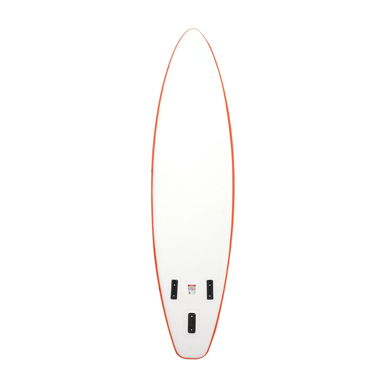 La schiuma EVA antiscivolo garantisce un appoggio sicuro anche su superficie bagnata ed è ideale per esercizi, yoga e uscite con bambini o animali domestici. Le pinne rimovibili migliorano la stabilità direzionale e la manovrabilità, mentre il sistema di stivaggio anteriore con corde elastiche (bungee) mantiene saldamente zaino e piccoli oggetti. La pressione consigliata di 12–15 PSI assicura rigidità e prestazioni ottimali.