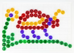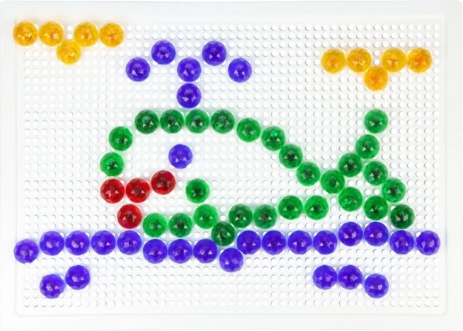 Questo colorato mosaico cristallino permette ai bambini di creare motivi originali, dagli animaletti alle casette e ai mezzi di trasporto. I piolini trasparenti brillano splendidamente e invogliano a continuare a comporre, mentre la solida base retinata mantiene tutto in sicurezza al suo posto.