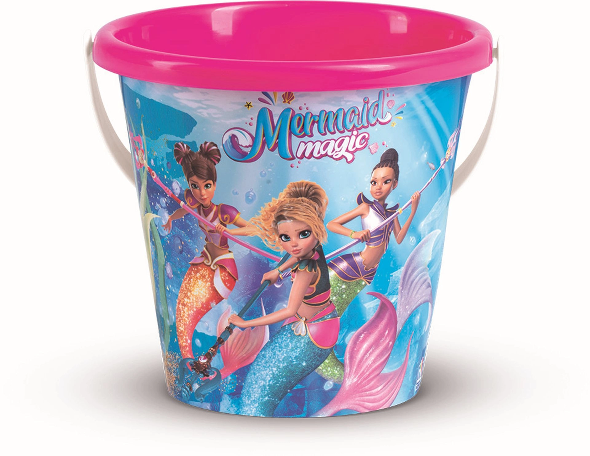 Secchiello di medie dimensioni per la sabbia con motivo di sirenetta del marchio ANDRONI che farà felici i piccoli costruttori in spiaggia e nel parco giochi. È realizzato in plastica di qualità in Italia, ha un diametro di 17 cm, un'altezza di 16 cm ed è leggero (0,10 kg), quindi i bambini possono trasportarlo facilmente. Adatto a partire da 10 mesi.