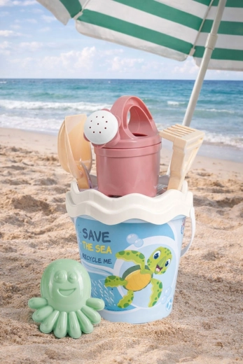 Questo set per la sabbia, stiloso ed ecologico, è prodotto in Italia con plastiche riciclate di alta qualità, resistenti, sicure e rispettose dell'ambiente. Grazie alla composizione pratica e ai piacevoli colori pastello, stimola la creatività dei bambini e la percezione sensoriale durante il gioco sulla sabbia e in acqua.