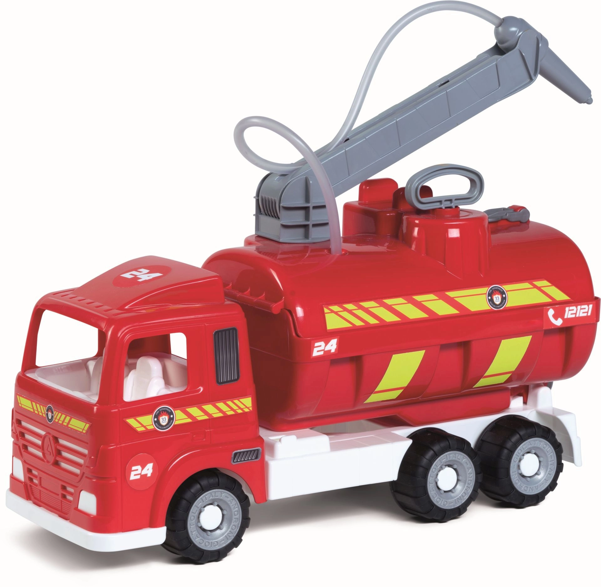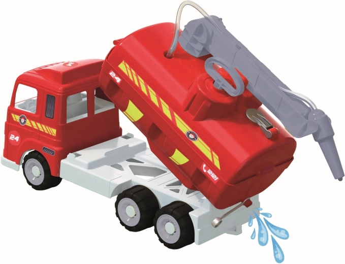La cisterna e il tubo con ugello conferiscono un aspetto autentico al mezzo dei vigili del fuoco e stimolano il gioco creativo.