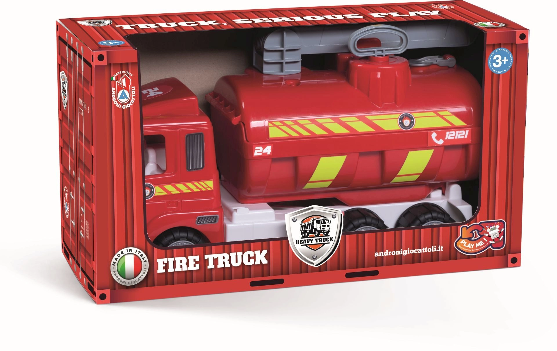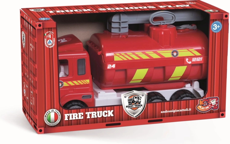 Parti all'azione con il robusto camion dei pompieri ANDRONI della linea Heavy Trucks. Questo grande modello lungo 52 cm offre una vera pompa ad acqua con azionamento manuale, ruote gommate per una guida silenziosa e sicura e una struttura resistente in plastica di alta qualità prodotta in Italia. Ideale per piccoli pompieri dai 3 anni che amano il gioco realistico e l’avventura.