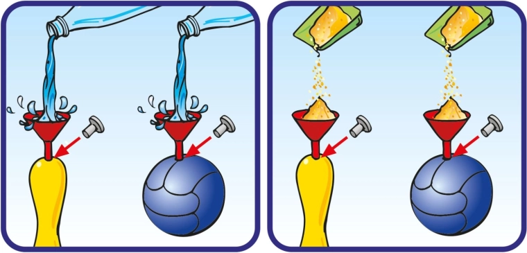 Il set è progettato per un uso semplice: i fori di riempimento si chiudono dopo il riempimento con piccoli tappini, che fanno parte del supporto nero per i birilli. Grazie all’altezza dei birilli di 27 cm, il gioco è chiaro anche per i bambini più piccoli e favorisce lo sviluppo di motricità, coordinazione e precisione.