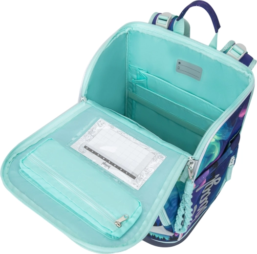 La cartella BAAGL Zippy Plus Aurora GRS è progettata per un trasporto comodo e salutare a partire dalla prima classe della scuola primaria. Grazie al sistema dorsale scorrevole con regolazione in tre misure e agli spallacci completamente regolabili, si adatta alla crescita del bambino e a una corretta postura. Il fondo rigido e la struttura alleggerita aiutano a mantenere una forma stabile e sicurezza nell’uso quotidiano.