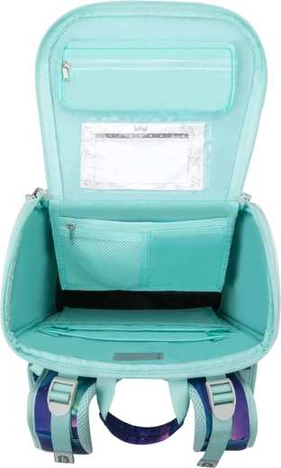 Il set include un capiente astuccio a un scomparto con alette, elastici rinforzati e finestrella per l’orario, inoltre una sacca pratica con tasca con zip per le scarpe da ginnastica o lo sport e un portafoglio da collo con etichetta per il nome e chiusura di sicurezza. Il tutto coordinato nel design Aurora con elementi riflettenti per una migliore visibilità.