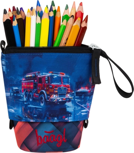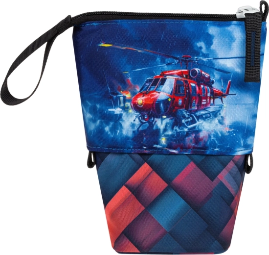 Astuccio scolastico per bambini, elegante e resistente, con motivo Soccorritori, offre un design intelligente 2 in 1 – astuccio e pratico portapenne da tavolo. Realizzato in materiale robusto e idrorepellente, mantiene perfettamente la forma e protegge il contenuto. Scelta sostenibile con certificazione GRS e almeno 50% di materiali riciclati.