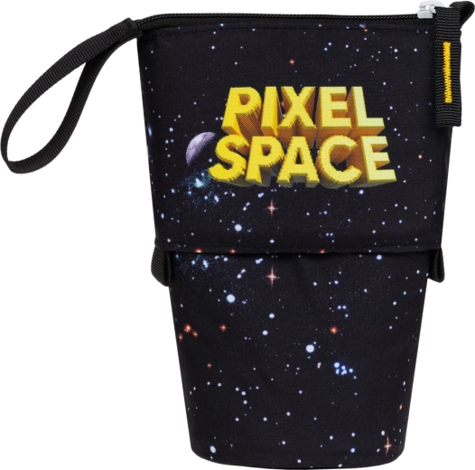 L'elegante astuccio BAAGL con motivo Pixel Space è realizzato in materiale robusto e impermeabile, che mantiene la forma e protegge in modo affidabile il contenuto. Grazie al design intelligente, con un solo gesto lo trasformi in un supporto da tavolo, così matite e pennarelli sono sempre ben visibili e a portata di mano. Scelta sostenibile con certificazione GRS e tasca interna segreta per piccoli oggetti.