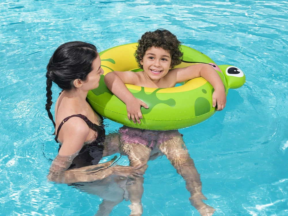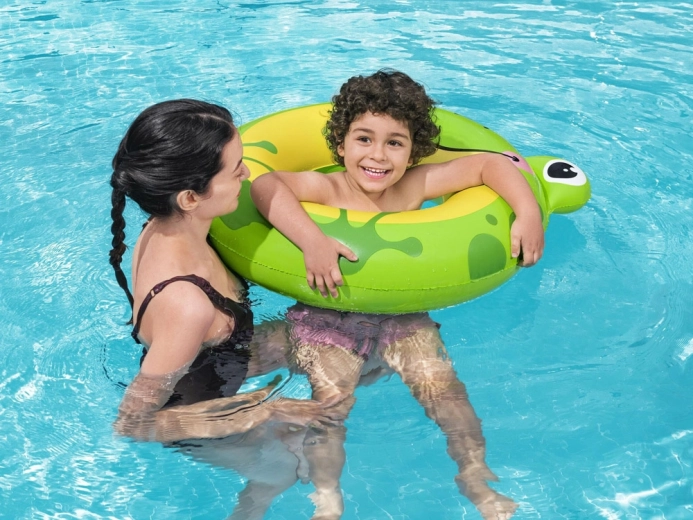 Goditi l’estate con l’anello per bambini Bestway SPLASHPALS a forma di simpatica ranocchia. Il materiale gonfiabile leggero e resistente garantisce una galleggiabilità affidabile, mentre la forma studiata favorisce la stabilità in acqua. Il vivace colore verde e la grafica giocosa aumentano la visibilità, così avrai sempre il bambino sotto controllo.