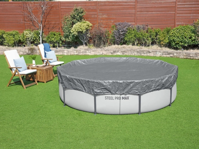 La copertura premium per piscina rotonda con diametro di 3,05 m del marchio BESTWAY protegge in modo affidabile l’acqua da foglie, erba e sporco. È realizzata in materiale rinforzato resistente ai raggi UV con tecnologia Polar‑Shield, che garantisce flessibilità anche con gelo fino a −25 °C. Pratici fori di drenaggio impediscono l’accumulo d’acqua in superficie e il fissaggio antivento mantiene la copertura saldamente in posizione.
