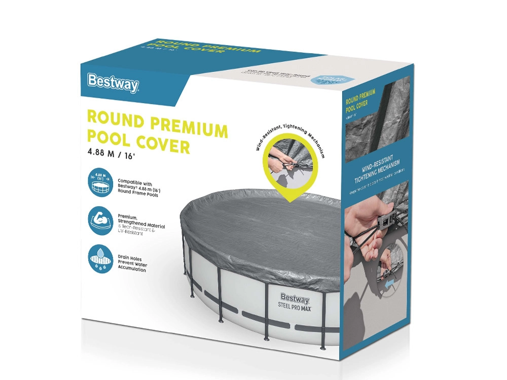 Questo telo di copertura BESTWAY premium è progettato per piscine rotonde con struttura a telaio dal diametro di 4,88 m. Il materiale rinforzato e impermeabile con stabilizzazione UV e finitura Polar‑Shield mantiene le proprie caratteristiche anche con gelo fino a -25 °C. I pratici fori di drenaggio impediscono l’accumulo d’acqua in superficie e semplificano l’uso quotidiano.
