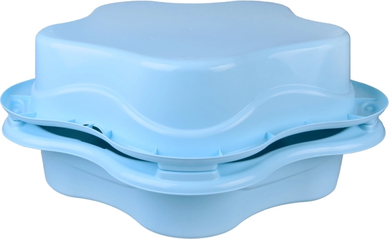Le due metà perfettamente combacianti si usano separatamente come sabbiera e piscinetta bassa, oppure si richiudono dopo il gioco per mantenere il contenuto pulito.