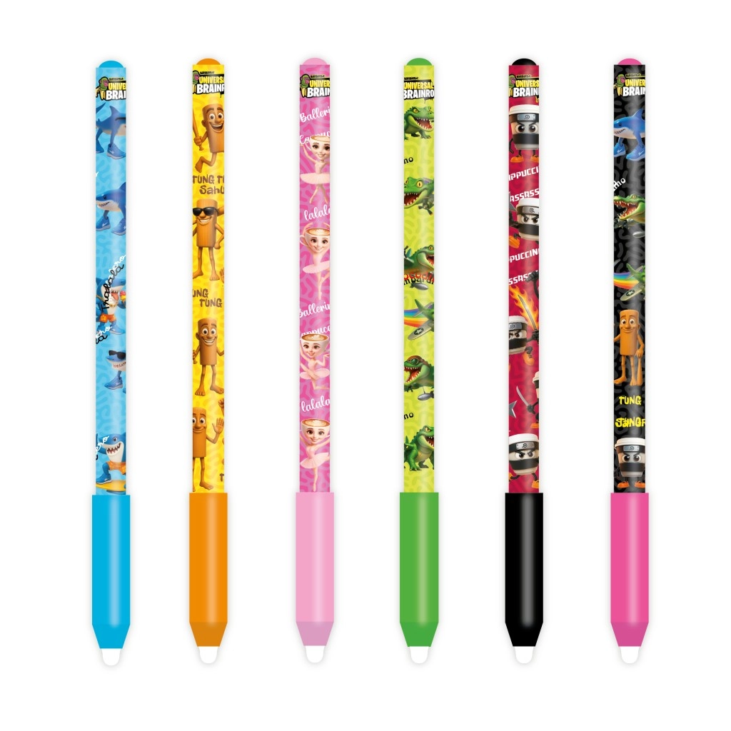 Scopri la divertente penna cancellabile a tema Italian Brainrot – una serie di meme surreali che ha conquistato TikTok e Instagram. La penna scrive in modo scorrevole e, grazie all’inchiostro speciale, si cancella facilmente senza danneggiare la carta.