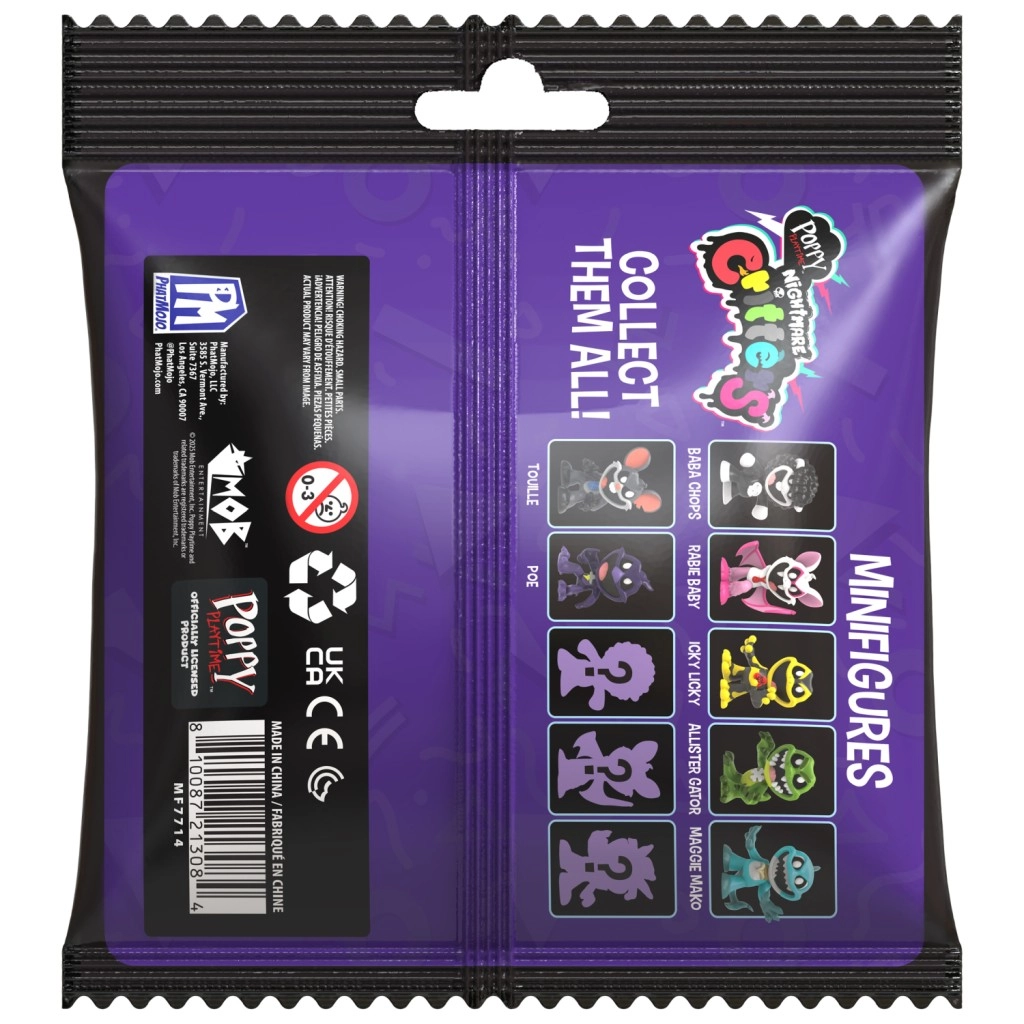 Scopri i segreti di Playtime Co. con la linea da collezione Poppy Playtime Nightmare Critters – Series 4! Minifigure stilizzate alte circa 6,7 cm che portano in vita i personaggi preferiti della Capitolo 4, tra cui Baba Chops, Rabie Baby, Icky Licky, Allister Gator, Maggie Mako, Touille e Simon Smoke – più 3 figure misteriose. Collezione ufficialmente licenziata, ideale sia per esposizione che gioco e un regalo perfetto per i fan.