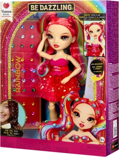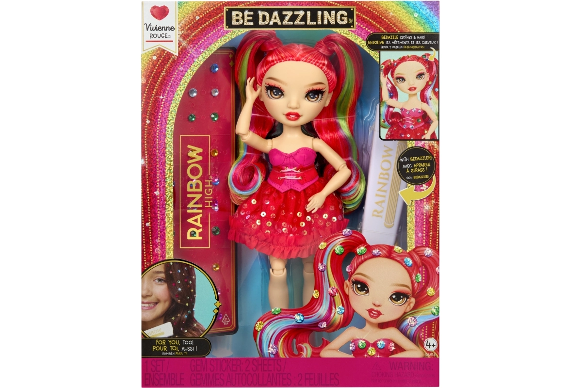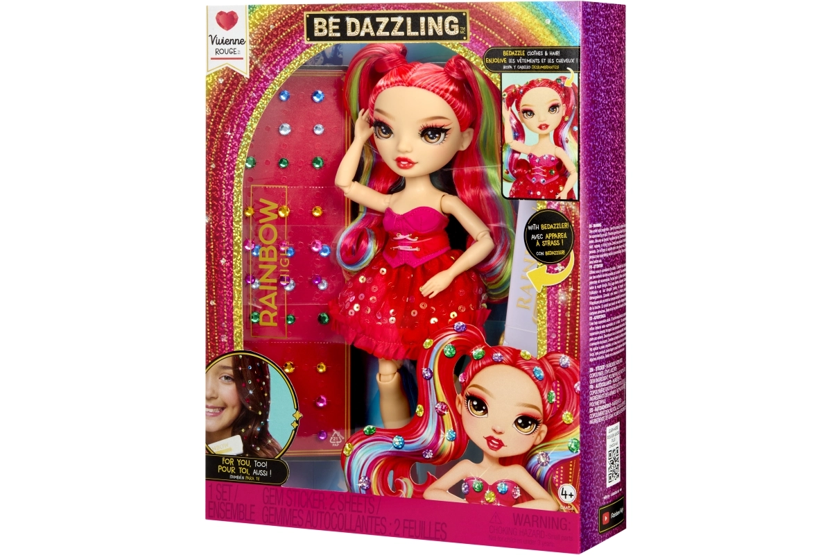 La bambola Rainbow High Vivienne Rouge porta nella tua collezione una decisa energia rossa e una moda ispirata allo spettro dell’arcobaleno. I suoi lunghi capelli pettinabili con ciocche arcobaleno, l’abito scintillante e le scarpe coordinate permettono di creare combinazioni d’effetto per il gioco e l’esposizione. Grazie alle articolazioni su braccia, gambe e testa, la posizioni facilmente in diverse pose.