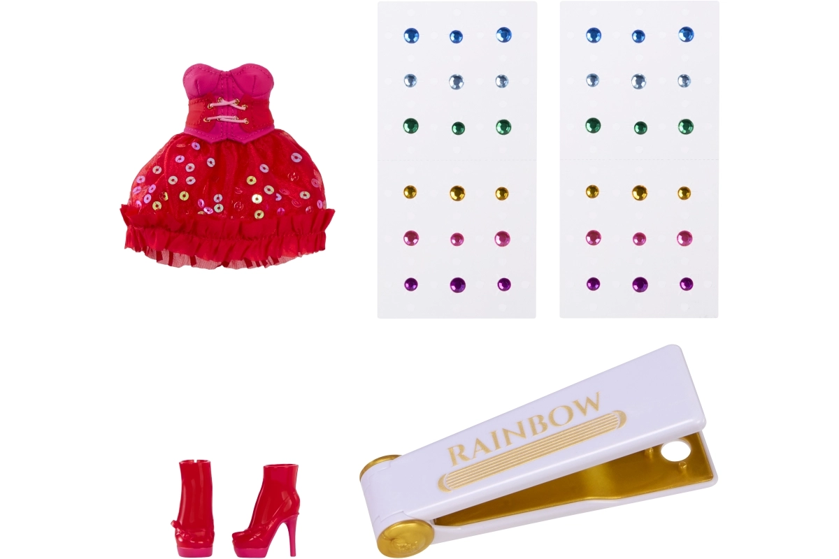 Con lo strumento incluso Rainbow High puoi applicare rapidamente e con facilità strass colorati su capelli o abiti, creando in un attimo un look glam unico. Questo set incoraggia creatività, espressione di sé e lo sviluppo della motricità fine — il regalo ideale per piccole stiliste e collezioniste.