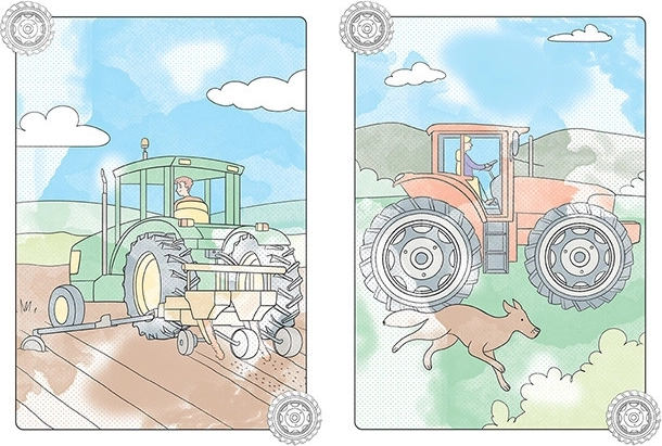 - 8 immagini magiche con motivi di trattori e macchine agricole.