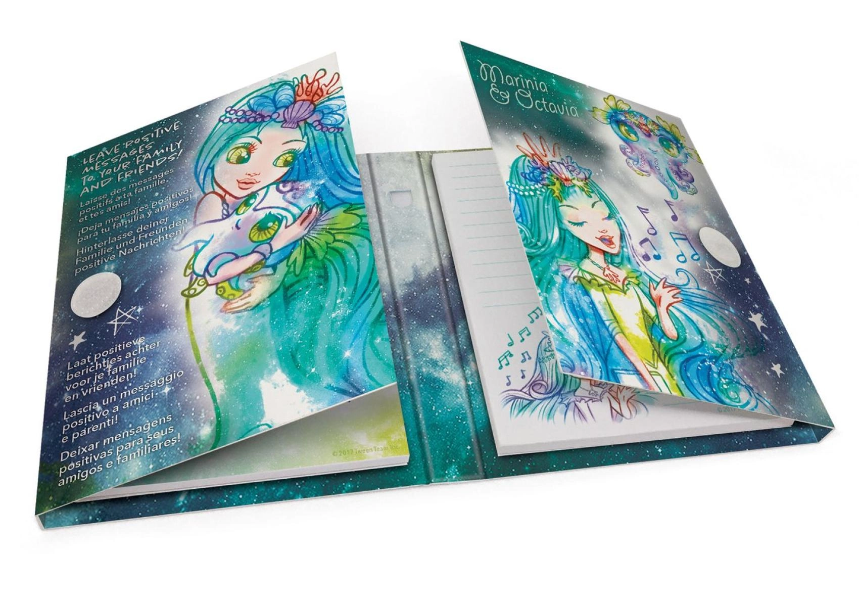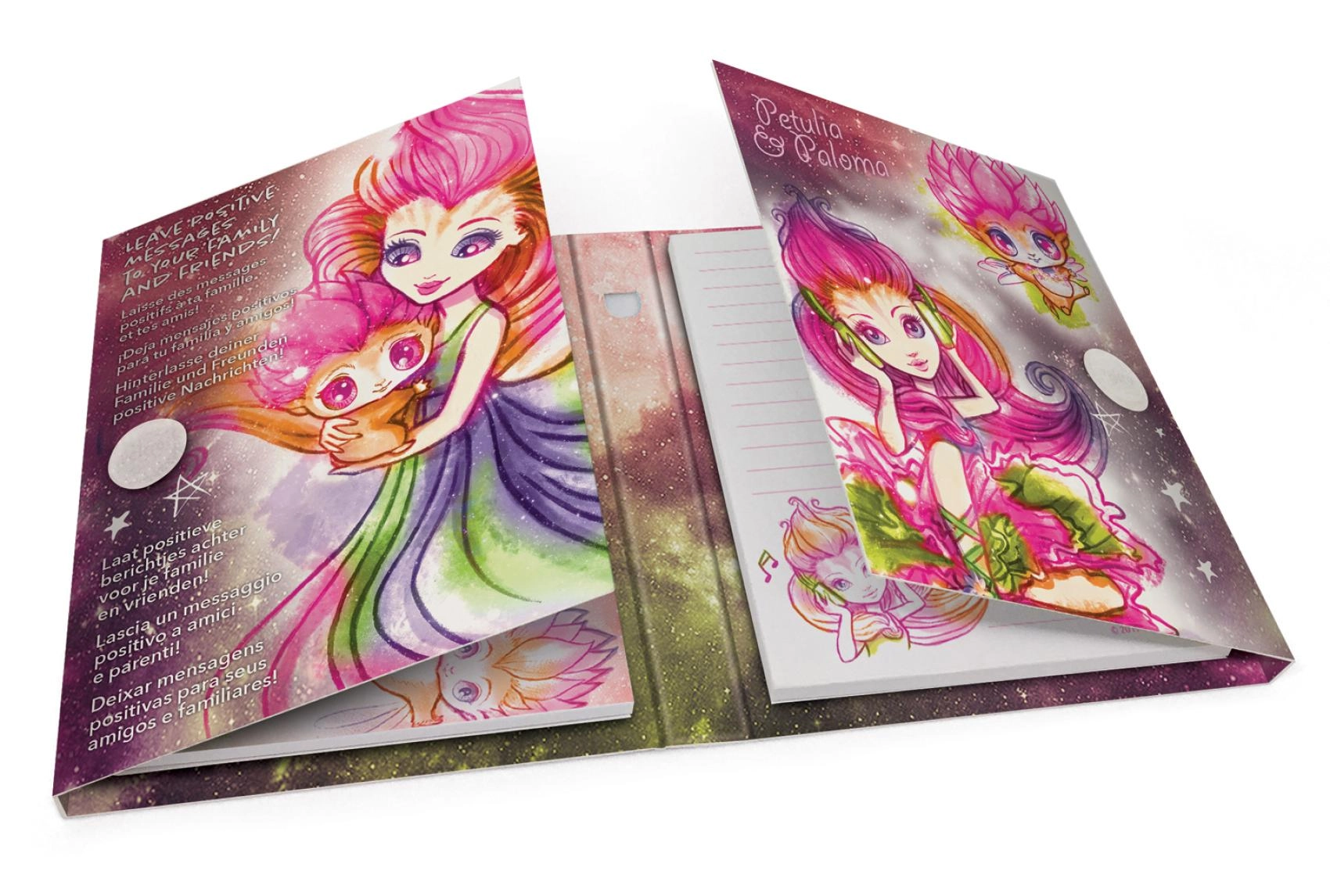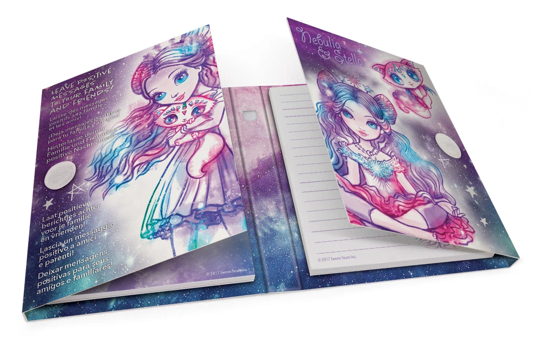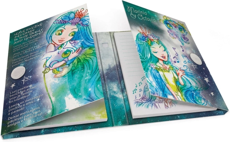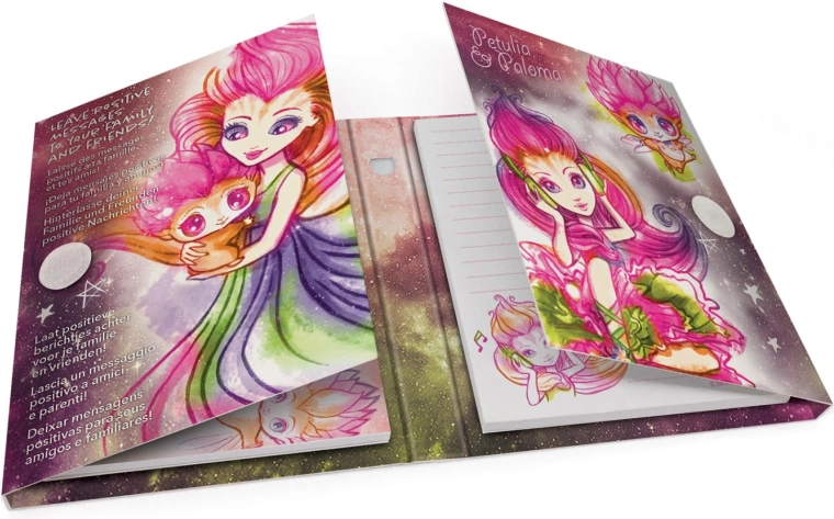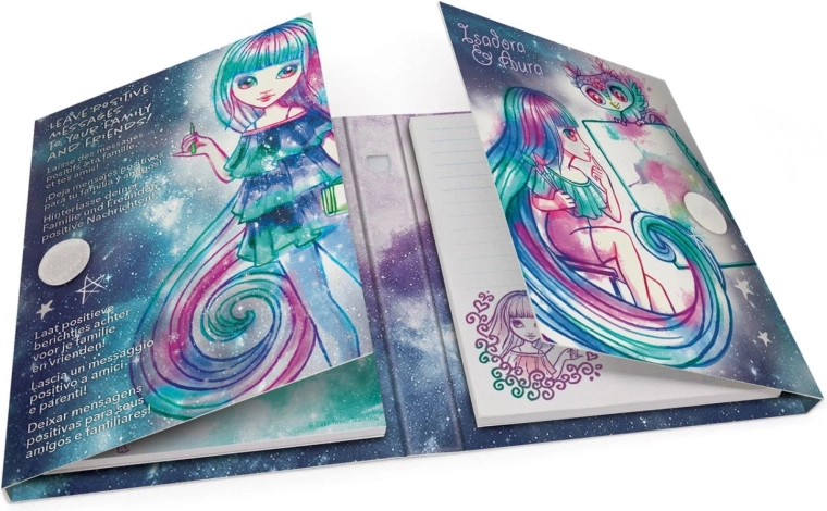 Copertine rigide con illustrazioni colorate e motivi stellari che entusiasmeranno gli amanti delle galassie incantate e illumineranno ogni appunto.