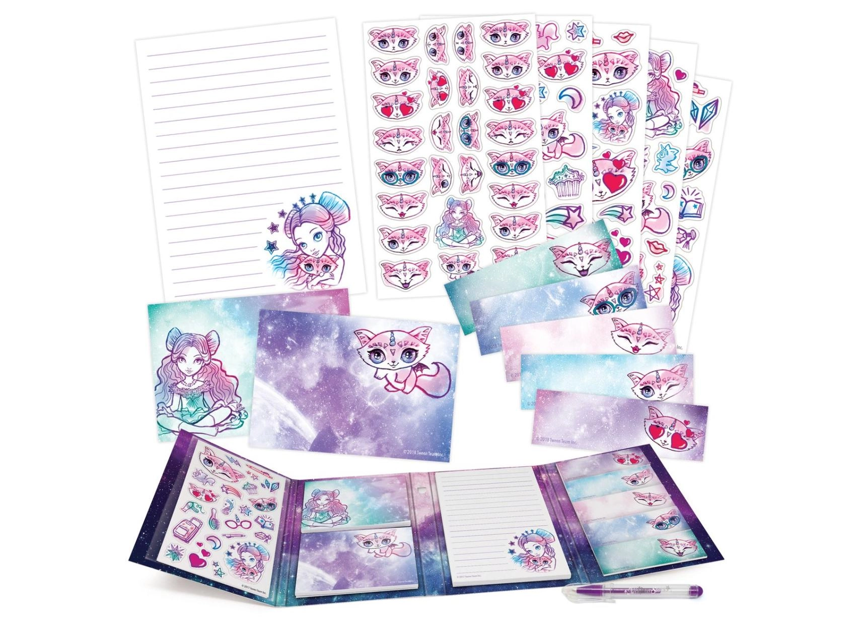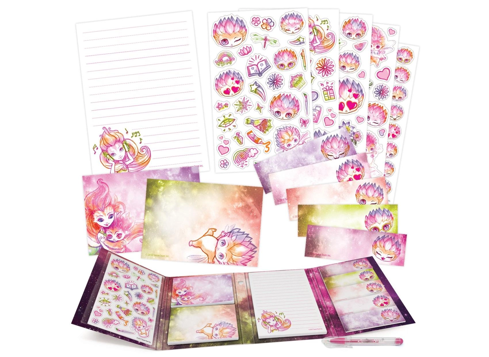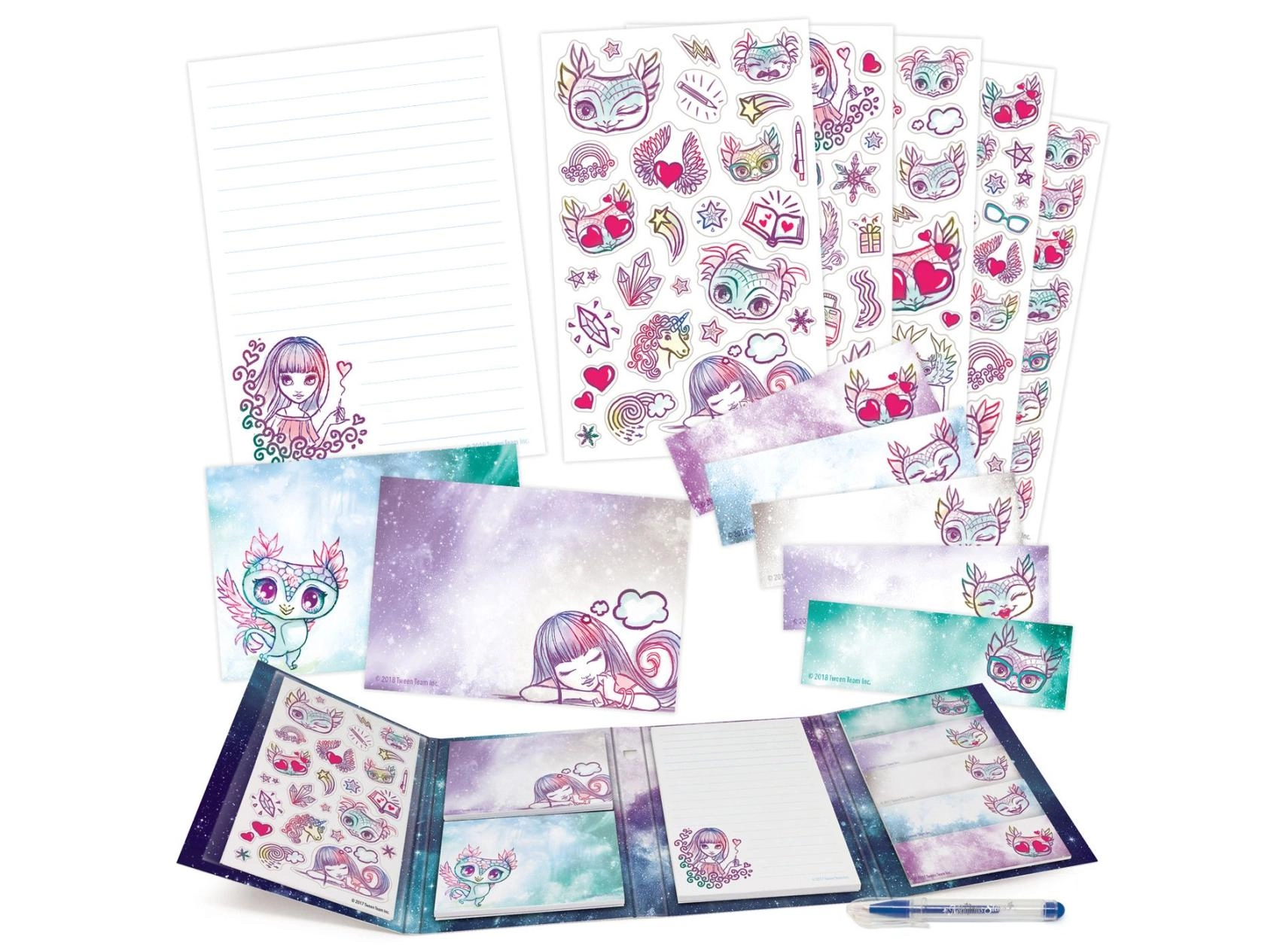 Copertine rigide con illustrazioni colorate e motivi stellari che entusiasmeranno gli amanti delle galassie incantate e illumineranno ogni appunto.