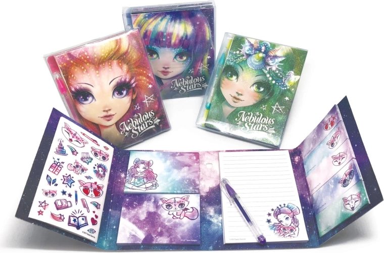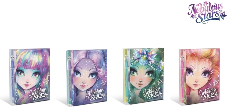 Scopri il magico mondo di NEBULOUS STARS con il mini diario con penna, pensato per annotare esperienze, sogni e creatività in viaggio. Le eleganti illustrazioni galattiche e la penna coordinata trasformano ogni nota in un piccolo rituale, sia a scuola, a casa che in gita.