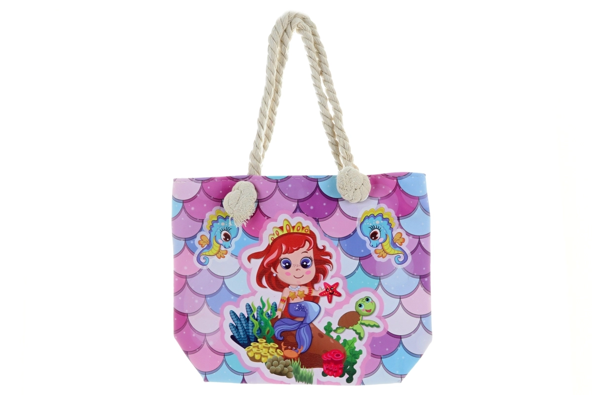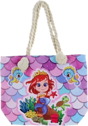 Elegante borsa in tessuto con motivo Sirena, ideale per l’uso quotidiano. Il lato anteriore è gommato e lavabile, quindi facile da mantenere pulito. Dimensioni compatte ca. 27,5 × 22 cm e comodi manici di 17 cm (x2) per un trasporto confortevole. Confezione pratica in sacchetto. Il prodotto non è un giocattolo.