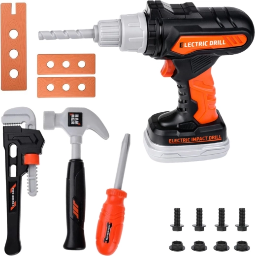 Questo set di attrezzi per bambini è un’ottima scelta per i piccoli appassionati che amano imitare gli adulti nei lavori domestici. La struttura resistente in plastica di alta qualità garantisce un uso sicuro e una lunga durata. L’avvitatore a batteria interattivo avvita e svita, emette effetti sonori realistici e, grazie agli inserti intercambiabili e alla batteria rimovibile, ricorda fedelmente un vero utensile.