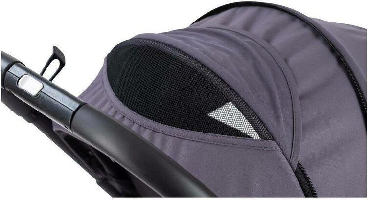 Il tettuccio regolabile con finestrella permette di tenere d’occhio il bambino e offre protezione dal sole, mentre il pannello di ventilazione migliora il flusso d’aria.