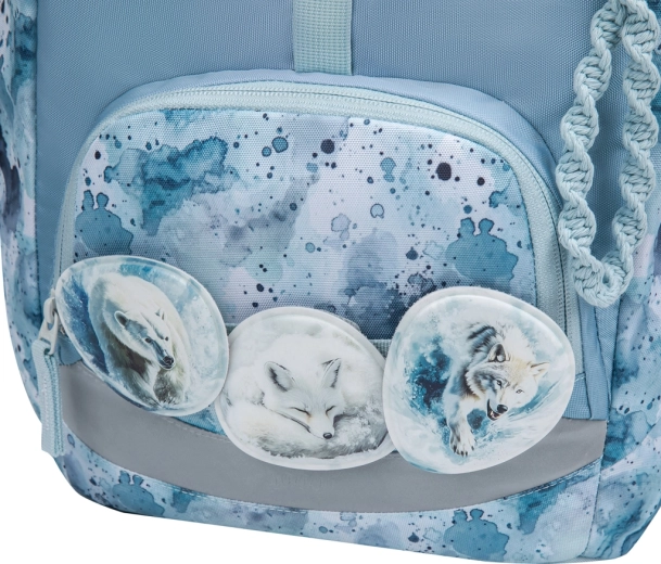 L’organizzazione interna a camera singola con tasca ed elastico per fissare le cartelline semplifica la gestione del materiale scolastico. Lo zaino è realizzato con materiali riciclati e idrorepellenti ed è dotato di elementi riflettenti per una maggiore visibilità al crepuscolo e sotto la pioggia. La chiusura Magnetic Click, semplice e sicura, è adatta a ogni bambino, mentre le spille removibili (patches) permettono di cambiare l’aspetto in base all’umore.