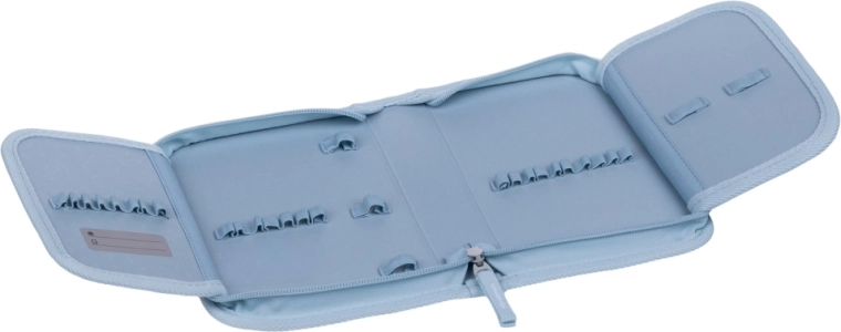 L’astuccio con zip di qualità YKK e due alette ospita matite, pastelli e pennarelli grazie agli elastici robusti; all’interno trovi una taschina per piccoli oggetti e una finestrella per l’orario. La sacca con tasca frontale con zip è ideale per scarpe di ricambio, ginnastica e attività; ha corde robuste e un passante per agganciarla allo zaino. Il grembiule per attività artistiche protegge i vestiti durante i lavoretti e il portafoglio da collo con patta a chiusura custodisce in sicurezza i piccoli oggetti. L’intero set è realizzato con materiali idrorepellenti e riciclati e vanta la certificazione GRS per una produzione sostenibile.