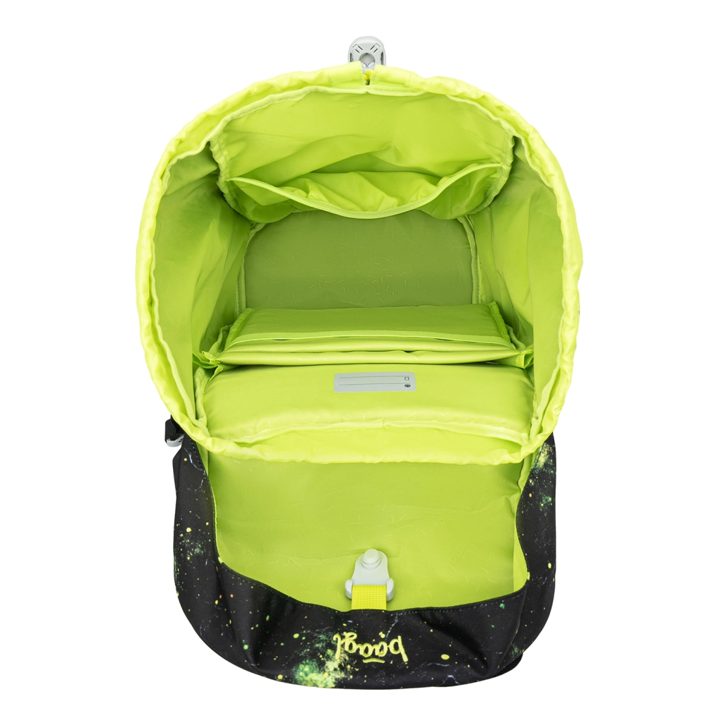 L’organizzazione interna monocamera con tasca ed elastico per fissare le cartelline aiuta a mantenere l’ordine nel materiale scolastico. Lo zaino e gli accessori sono realizzati in materiali impermeabili riciclati certificati GRS e completati da elementi riflettenti per una migliore visibilità. Il design con distintivi intercambiabili (patches) consente ai bambini di cambiare facilmente l’aspetto.