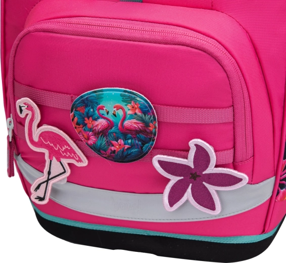Lo zaino scolastico BAAGL Airy Plus con motivo fenicotteri unisce un design moderno e giocoso al massimo comfort e a un trasporto salutare. Grazie al peso inferiore a 1200 g non affatica la schiena e il pannello posteriore anatomico con rinforzo in alluminio integrato aiuta a mantenere una postura corretta. Il sistema regolabile Grow si imposta facilmente in tre misure, così lo zaino cresce insieme al bambino.