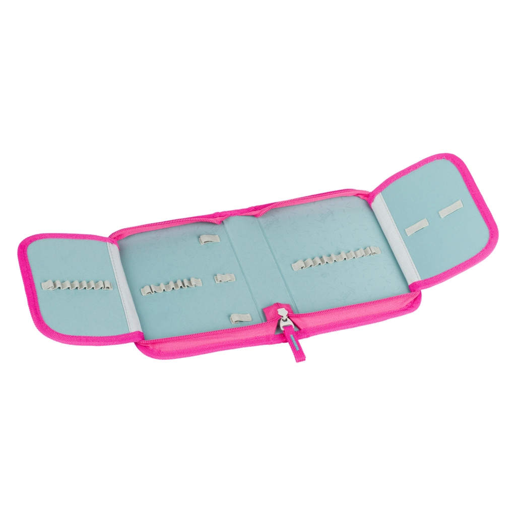 L’astuccio a un piano con due alette offre un’organizzazione chiara del materiale di scrittura, dispone di zip YKK, taschina per piccoli oggetti e finestrella per l’orario. La sacca per scarpe o attività può essere facilmente agganciata allo zaino con il moschettone. Il grembiule protegge i vestiti durante arte e attività creative e il portamonete con cordino custodisce in sicurezza piccoli oggetti, carte e monete.