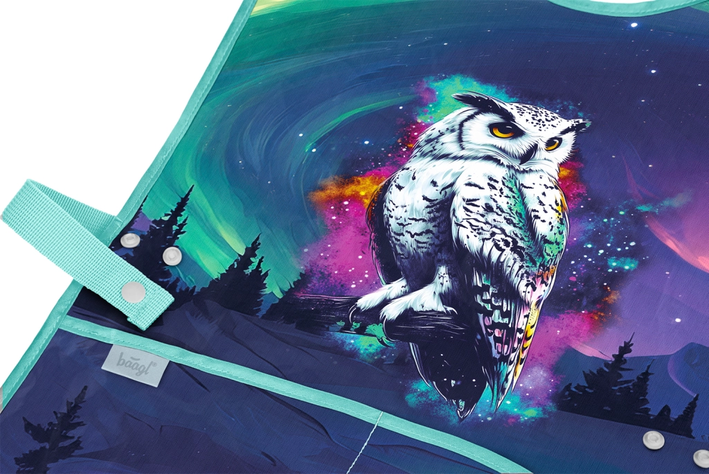 Il design con cielo notturno e aurora boreale conquista i piccoli creativi, mentre la chiusura laterale regolabile garantisce un uso comodo e sicuro. La produzione conforme allo standard GRS conferma l’impiego di materiali riciclati e il rispetto dell’ambiente.