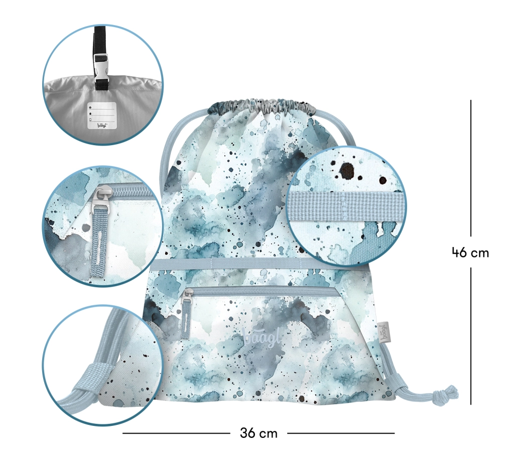 La sacca con tasca Baagl Polar GRS è la scelta ideale per la scuola, lo sport e le attività nel tempo libero. La tasca frontale con zip offre spazio per piccoli oggetti, mentre il vano principale accoglie comodamente scarpe, attrezzatura sportiva o gli indispensabili di tutti i giorni.
