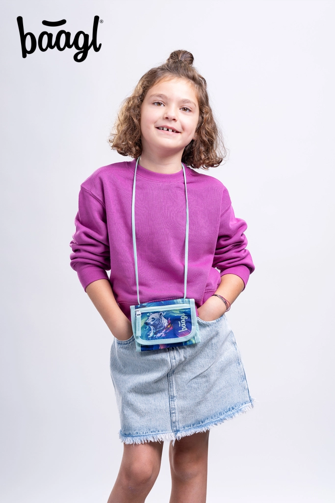 Cerchi un portafoglio leggero e sicuro per bambini e adulti? Il portafoglio da collo BAAGL Aurora unisce comfort, resistenza e un design accattivante con aurora boreale e orso. Grazie al cinturino regolabile con chiusura di sicurezza si può portare al collo, tenendo i valori sempre con sé e le mani libere.