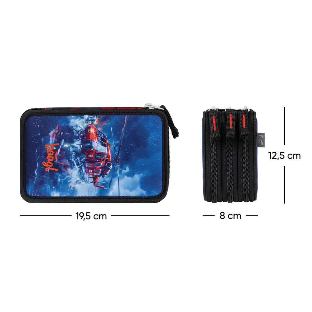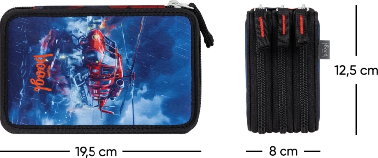 Astuccio scolastico a tre scomparti extra capiente con motivo dei soccorritori, offre spazio sufficiente per tutte le forniture di scrittura, elastici anche per pastelli e pennarelli spessi e affidabili cerniere YKK. Grazie al dorso rinforzato si chiude e si trasporta con facilità. Prodotto in conformità allo standard GRS. L'astuccio è senza contenuto.