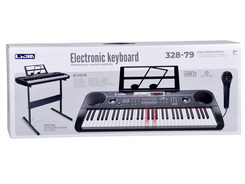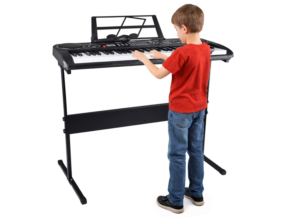 Con un’ampia gamma di 300 timbri (pianoforte, chitarra, violino, organo, ecc.) e 300 ritmi (pop, rock, disco…), troverai facilmente il tuo stile. Funzioni come Sustain, Vibrato, accordi Single/Fingered, 6 drum pad e Keys Drum sostengono la creatività e il senso del ritmo. Il microfono incluso consente di cantare e suonare contemporaneamente – ideale per esibizioni in casa.