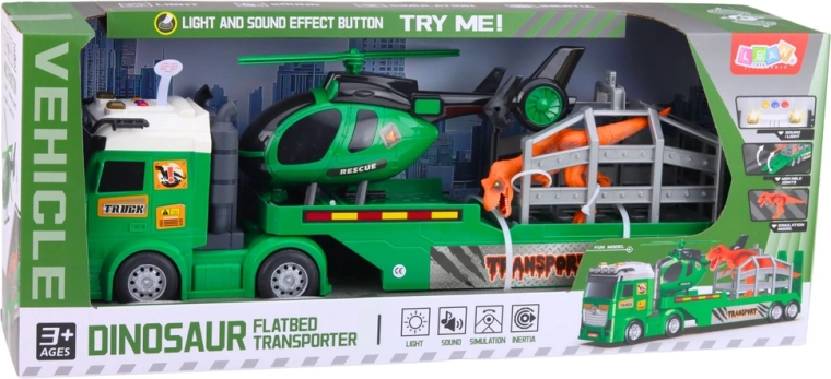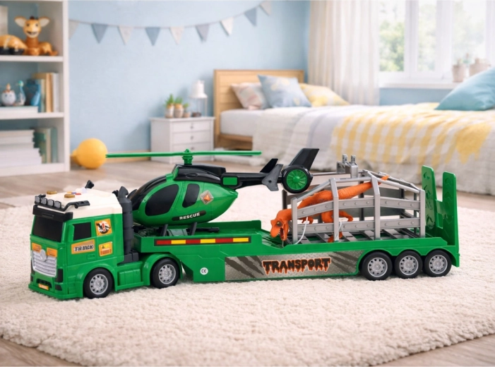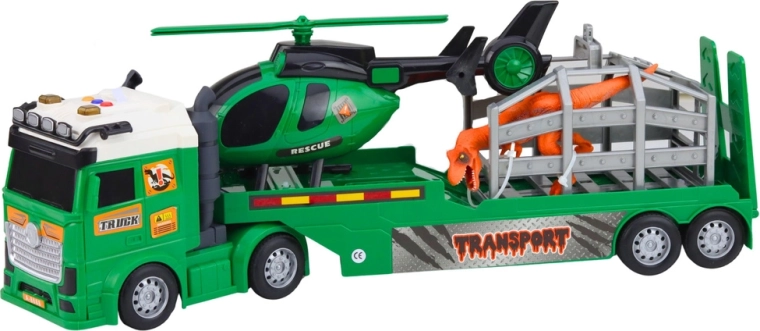 - Set di trasporto per bambini con trattore stradale, elicottero e gabbia per dinosauro