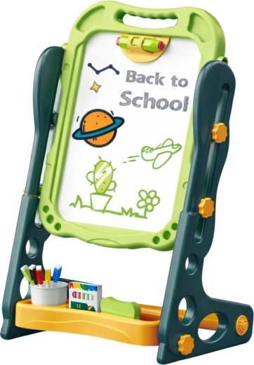 Scoprite una lavagna versatile che sviluppa fantasia, creatività e motricità fine. Un lato è dedicato al disegno con gesso, l’altro è cancellabile a secco e magnetico – ideale per esercitarsi con lettere, numeri e giochi creativi. La struttura stabile con cavalletto e pratica mensolina assicura un uso comodo e sicuro a casa e in viaggio.