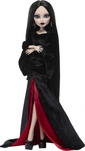 La bambola da collezione MORTICIA ADDAMS della serie Monster High x Wednesday offre finiture eccezionalmente dettagliate, articolazioni per il posing e un iconico stile gotico. Il lungo abito nero con spacco rosso, gioielli eleganti e tacchi originali la rendono perfetta sia per la vetrina che per il gioco creativo.