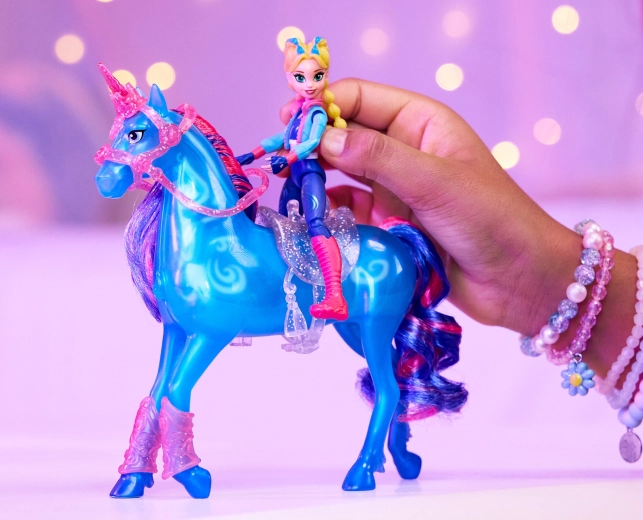 La bambola Isabel (circa 11 cm) ha 7 punti di articolazione per pose realistiche in sella e durante l’allenamento. Inclusi 3 accessori da allenamento, compresi trofeo e nastro decorativo per l’unicorno, per premiare ogni successo. Il set può essere combinato con altri personaggi e unicorni della serie per ampliare la collezione.