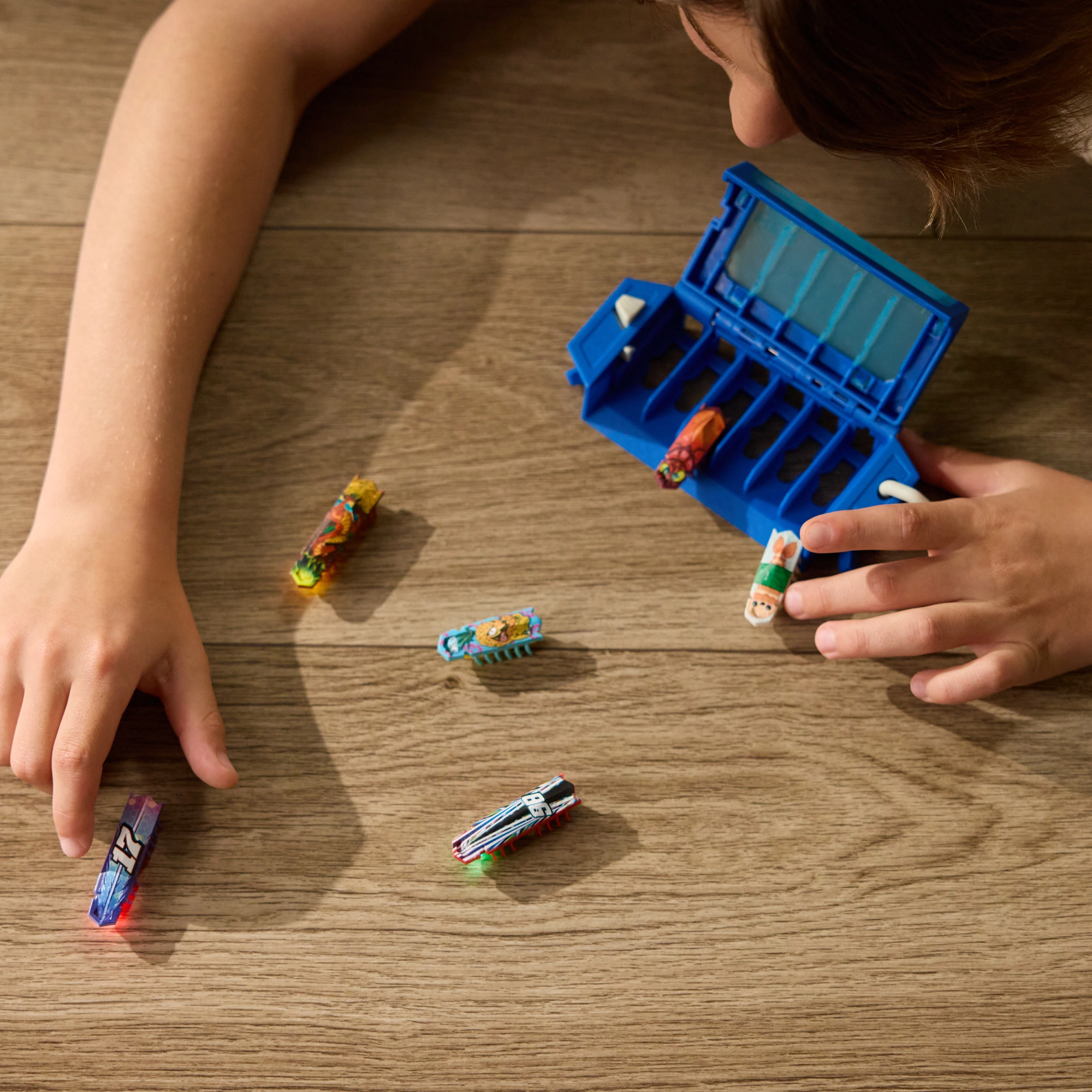 L’ingegnoso On‑The‑Go Launcher funge sia da custodia che da stazione di partenza. Puoi riporre fino a 6 robot Nano e con un solo pulsante aprire gli sportelli e rilasciarli tutti insieme: ideale per gare ed esperimenti con le traiettorie. Il set può essere combinato con altri set e ostacoli HEXBOTS Nano per costruire labirinti e piste da corsa personalizzate.