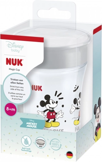 Insegna al tuo bambino a bere come i “grandi” con la NUK Magic Cup 360° con motivo MICKEY MOUSE. Grazie al bordo a 360° può bere da qualsiasi lato, mentre il disco in silicone evita le fuoriuscite. La tazza è senza BPA, ha solo 3 parti facili da lavare ed è adatta al lavaggio in lavastoviglie.