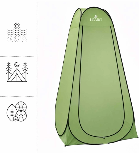 La pratica e mobile tenda pop-up LUARO offre una cabina privata immediata per cambiarsi, farsi la doccia o come toilette su spiaggia, in campeggio o ai festival. Grazie alla struttura autoportante si monta in pochi secondi, è leggera, resistente al vento e facile da trasportare nella sacca in dotazione.