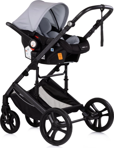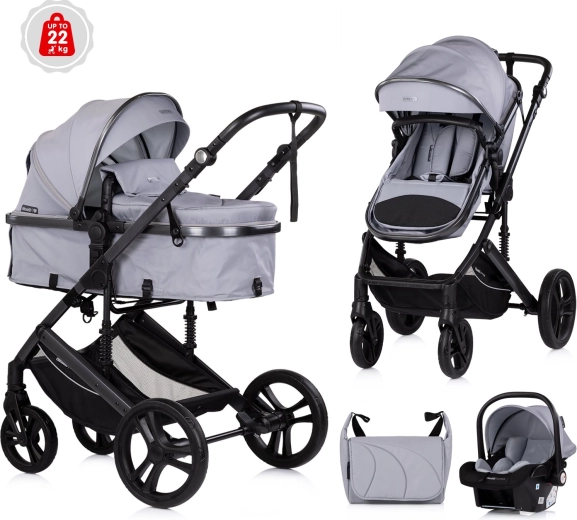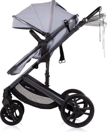 Elegante passeggino combinato per neonati e bambini fino a 22 kg, che unisce in uno navicella e seduta sportiva. Offre telaio leggero con sospensioni, seduta reversibile fronte strada e fronte genitore, maniglione regolabile e cestello capiente. Per la sicurezza del bambino sono presenti cintura a 5 punti e barra paracolpi rimovibile, mentre l’ampia capottina con aletta parasole assicura comfort con ogni clima.