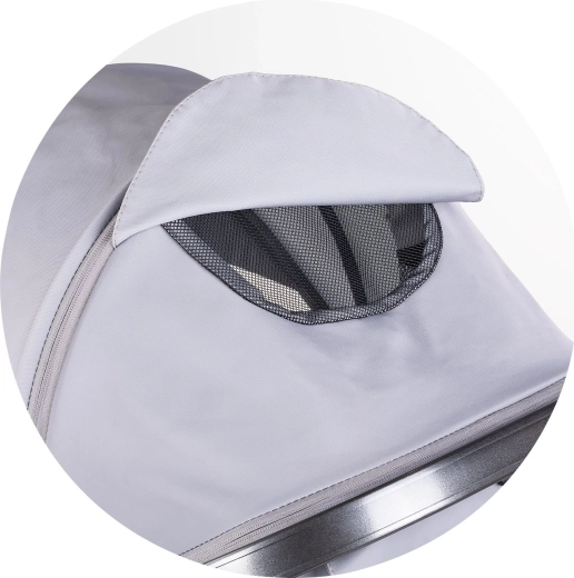 - Dettagli pratici – grande cestello, maniglione regolabile, ampia capottina con aletta parasole.