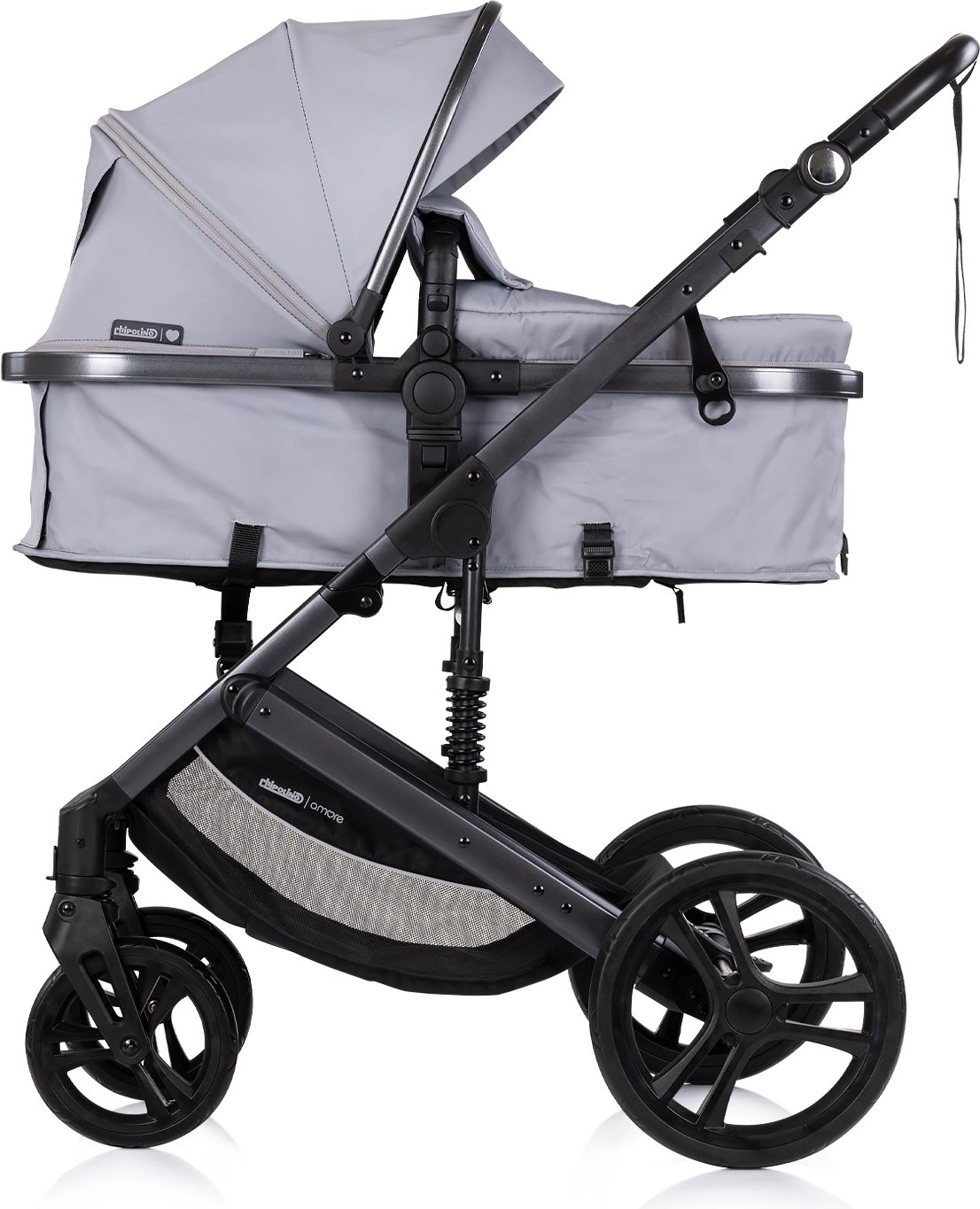 CHIPOLINO Amore 2in1 Platinum è un passeggino universale che cresce con il tuo bambino. Grazie alla facile trasformazione della seduta sportiva in navicella, è adatto fin dalla nascita (fino a 6 mesi e 9 kg in modalità navicella) e successivamente come passeggino fino a 22 kg. La struttura leggera e resistente con sospensioni offre una marcia fluida in città e al parco.