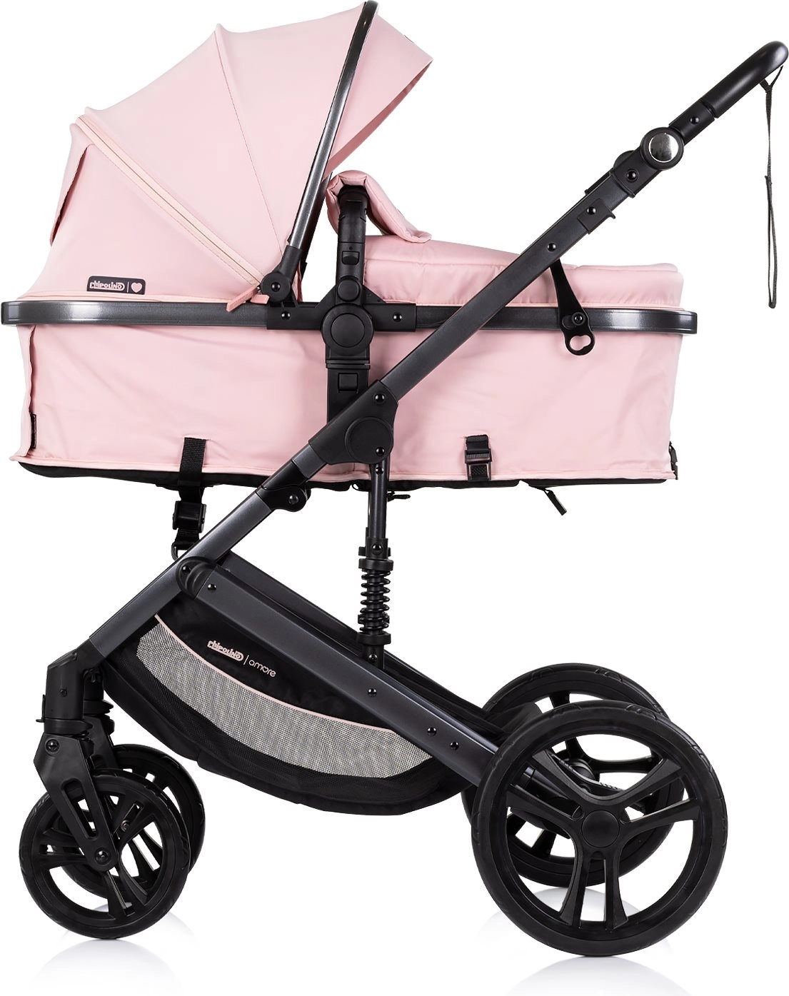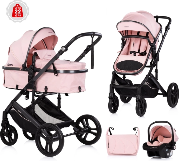 Elegante passeggino combinato CHIPOLINO AMORE 2in1 nella tonalità Powder Pink che offre navicella e seduta sportiva in un unico prodotto. Grazie al telaio leggero, sospensioni integrate e ruote grandi affronta sia la città che i terreni più impegnativi. Comfort e sicurezza sono garantiti da cinture a 5 punti, schienale regolabile in 3 posizioni, seduta reversibile e ampia cappottina con visiera parasole. Conforme alle norme EN1888-1 e EN1888-2.