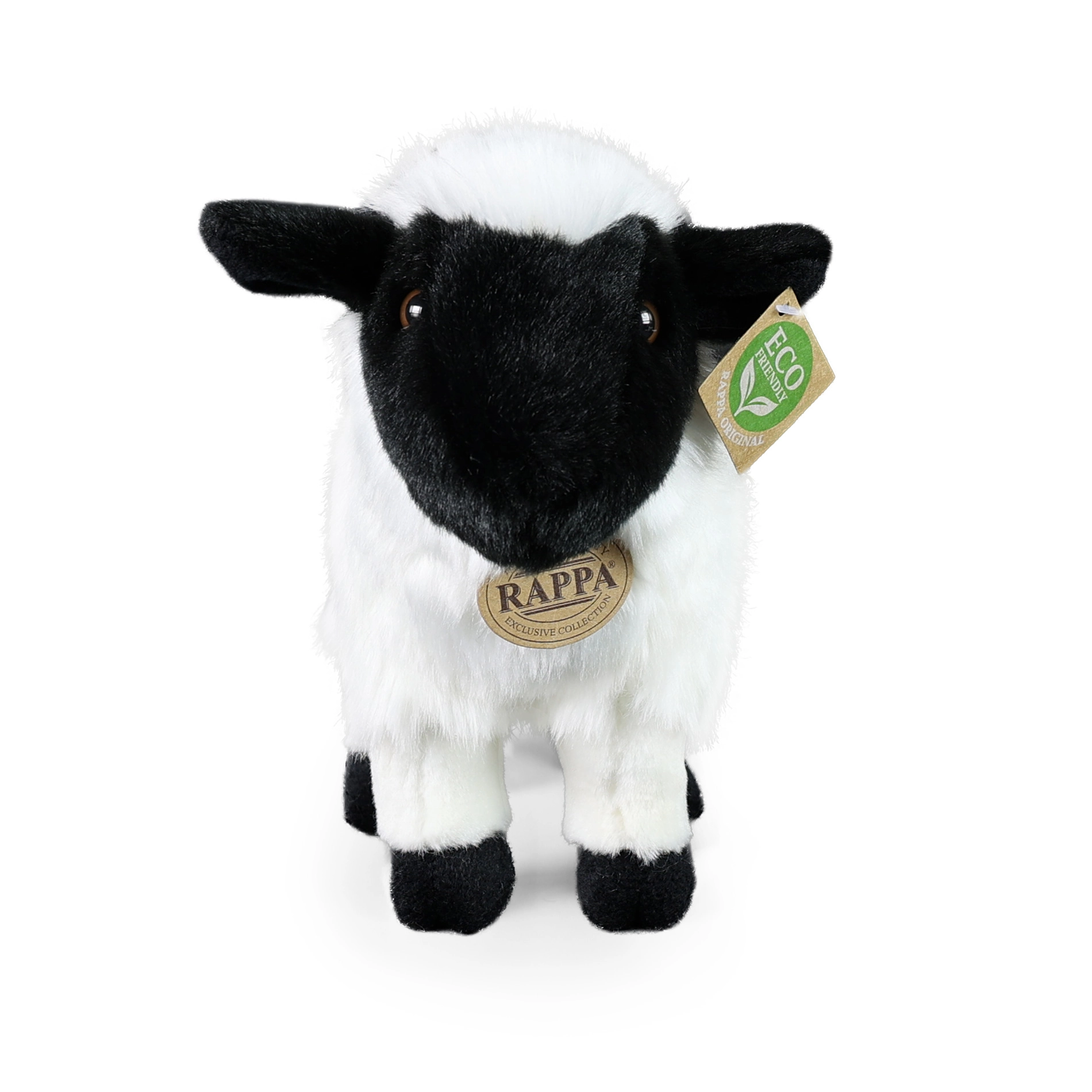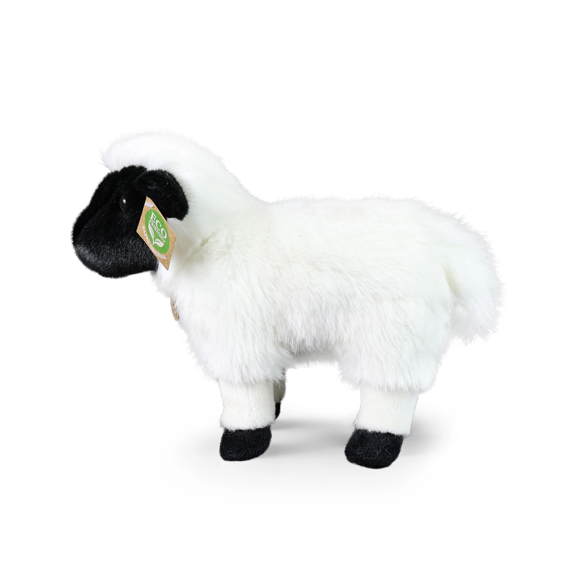 Adorabile pecora di peluche da 27 cm della collezione esclusiva RAPPA, realizzata con materiali di alta qualità, morbidissimi al tatto, e grazie alla lavorazione manuale sembra quasi reale. L’imbottitura in materiali riciclati (bottiglie in PET) è sicura anche per i neonati, perfetta per coccole e gioco e promuove una scelta di giocattoli sostenibile.