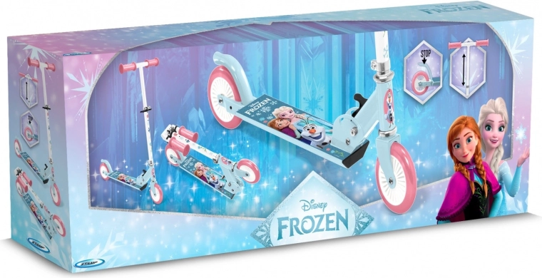 La pedana antiscivolo con motivo FROZEN aumenta la stabilità e il freno posteriore a parafango consente un arresto rapido e sicuro.